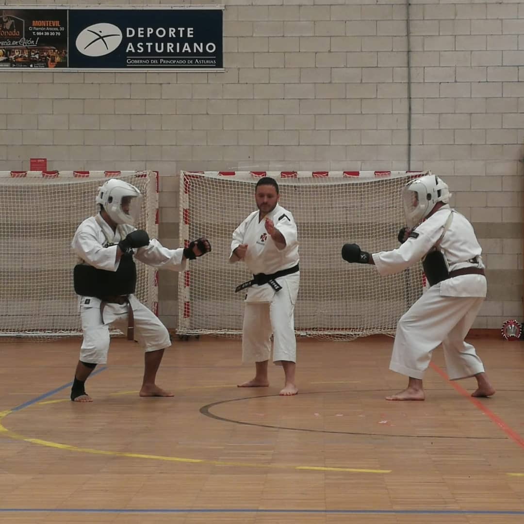 La sección Oviedo, dirigida por el maestro Kiko representa a FESK en una demostración pública de artes marciales en Asturias.